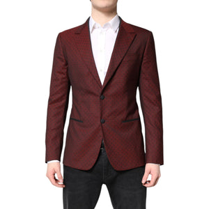 Dolce & Gabbana Maroon Wool Slim Fit Men Coat Jacket Blazer