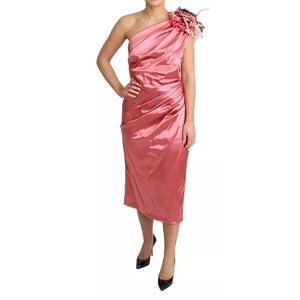 Dolce & Gabbana Pink Draped Midi Flower Applique Dress
