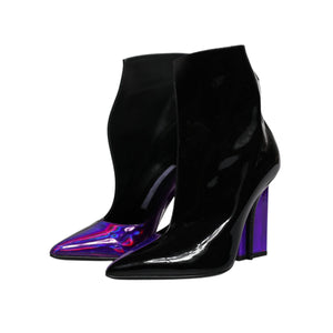 Dolce & Gabbana Purple Black Pointed Ankle Boots Shoes