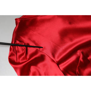 Dolce & Gabbana Red Satin Lace Trim Round Neck Blouse Top