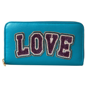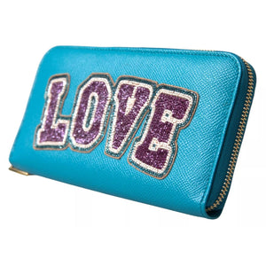 Dolce & Gabbana Wallet Light Blue LOVE Leather Zip Around Continental