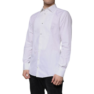 Dolce & Gabbana White Bib Cotton Poplin GOLD Men Formal Shirt