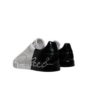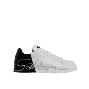 Dolce & Gabbana White Black Logo Portofino Sneaker Shoes