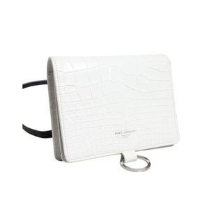 Dolce & Gabbana White Blue Leather Bifold Crossbody Sling Wallet