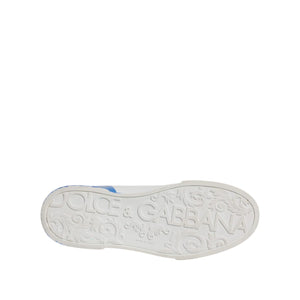 Dolce & Gabbana White Blue Portofino Leather Sneakers Shoes