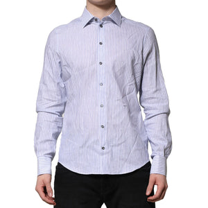 • Dolce & Gabbana White Blue Striped Cotton Dress Formal Shirt
