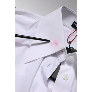 Dolce & Gabbana White Cotton Floral Appliques Dress Shirt Top
