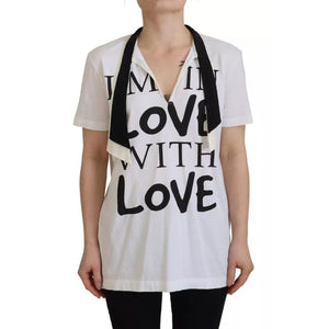 Dolce & Gabbana White Cotton Printed Ascot Collared T-shirt