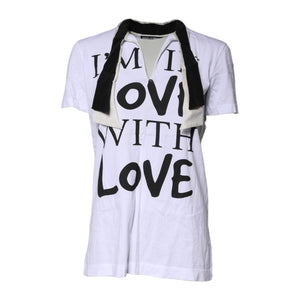 Gorgeous brand new, 100% Authentic Dolce & Gabbana t-shirt with wide ascot collar is made of thin jersey based on soft cotton and durable silk. The “I’m in love with love” print on the front shelf is a ready-made slogan for Instagram.