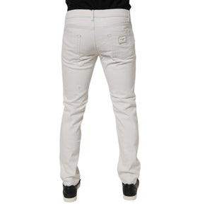 Dolce & Gabbana White Cotton Stretch Skinny Slim Denim Jeans