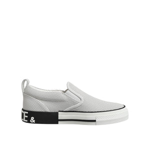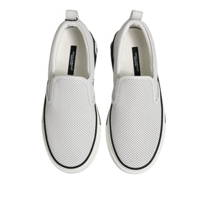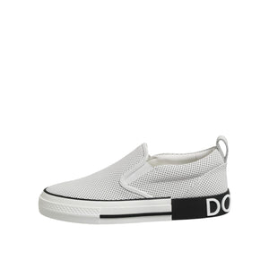 Dolce & Gabbana White Dotted Leather Slip On Men Sneakers Shoes