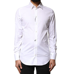 Dolce & Gabbana White GOLD Cotton Long Sleeves Men Dress Shirt
