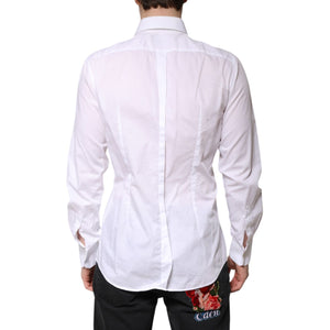 Dolce & Gabbana White GOLD Cotton Poplin Bib Men Dress Shirt