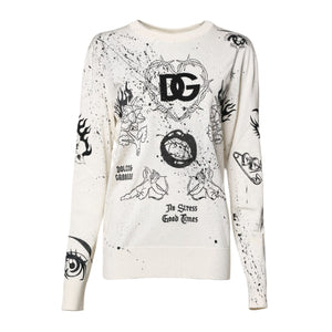 Dolce & Gabbana White Logo Angel Print Women Pullover Sweater