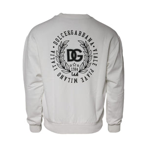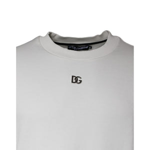 Dolce & Gabbana White Logo Cotton Crew Neck Pullover Sweater