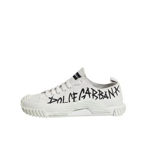 Dolce & Gabbana White Logo Print Lace Up Low Top Sneakers Shoes