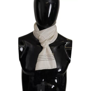 Dolce & Gabbana White Polka Dots Pattern Silk Fringes Wrap Scarf