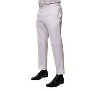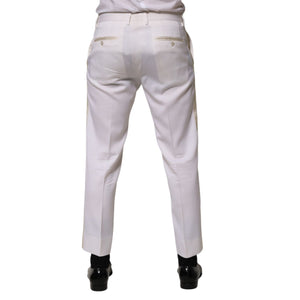 Dolce & Gabbana White Polyester Tapered Formal Trouser Pants