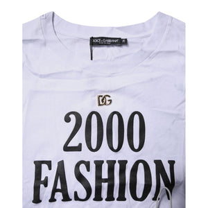 Dolce & Gabbana White Print Lace-Up Cotton Crew Neck T-shirt