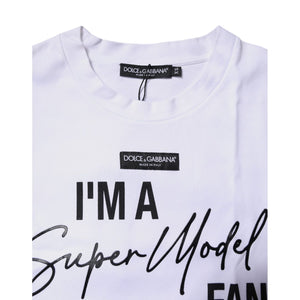 Dolce & Gabbana White Printed Cotton Round Neck Top T-shirt