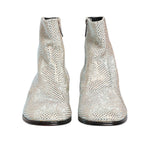 Gorgeous brand new, 100% Authentic Dolce & Gabbana DG Metal logo heeled Boots ARIOSTO with crystals in gray and silver.