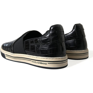 Dolce & Gabbana Black Croc Exotic Leather Sneakers Shoes