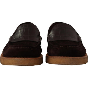 Dolce & Gabbana Brown Suede Leather Slip On Flats Moccasin Shoes