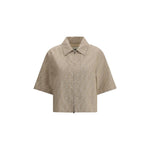 Fendi’s cropped chambray Jacket is made of lightweight cotton with a classic collar and short sleeves. This style features a double-slider front zipper closure and an all-over FF jacquard weave, the brand’s iconic detail, which gives the garment a distinctive and contemporary touch.