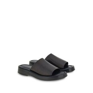 crossover-strap leather slides from Ferragamo featuring crossover strap detail, slip-on style, open toe, flat rubber sole, branded insole, black and calf leather. Leather flat sandals Size and Fit - Our boutique offers the following fittings for Salvatore Ferragamo shoes: EEE (extra wide) for men shoes, M (medium) for sporty women shoes and C (wide) for classic women shoes. Do not hesitate to contact us to have more information.