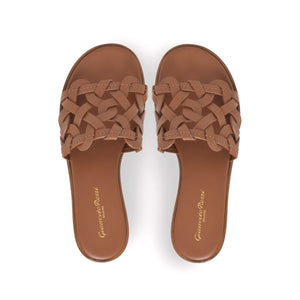 chocolate brown calf leather stacked heel crossover strap at the toe round open toe branded footbed flat leather sole Amalfi leather flat sandals Size and Fit - Tacco 1 cm