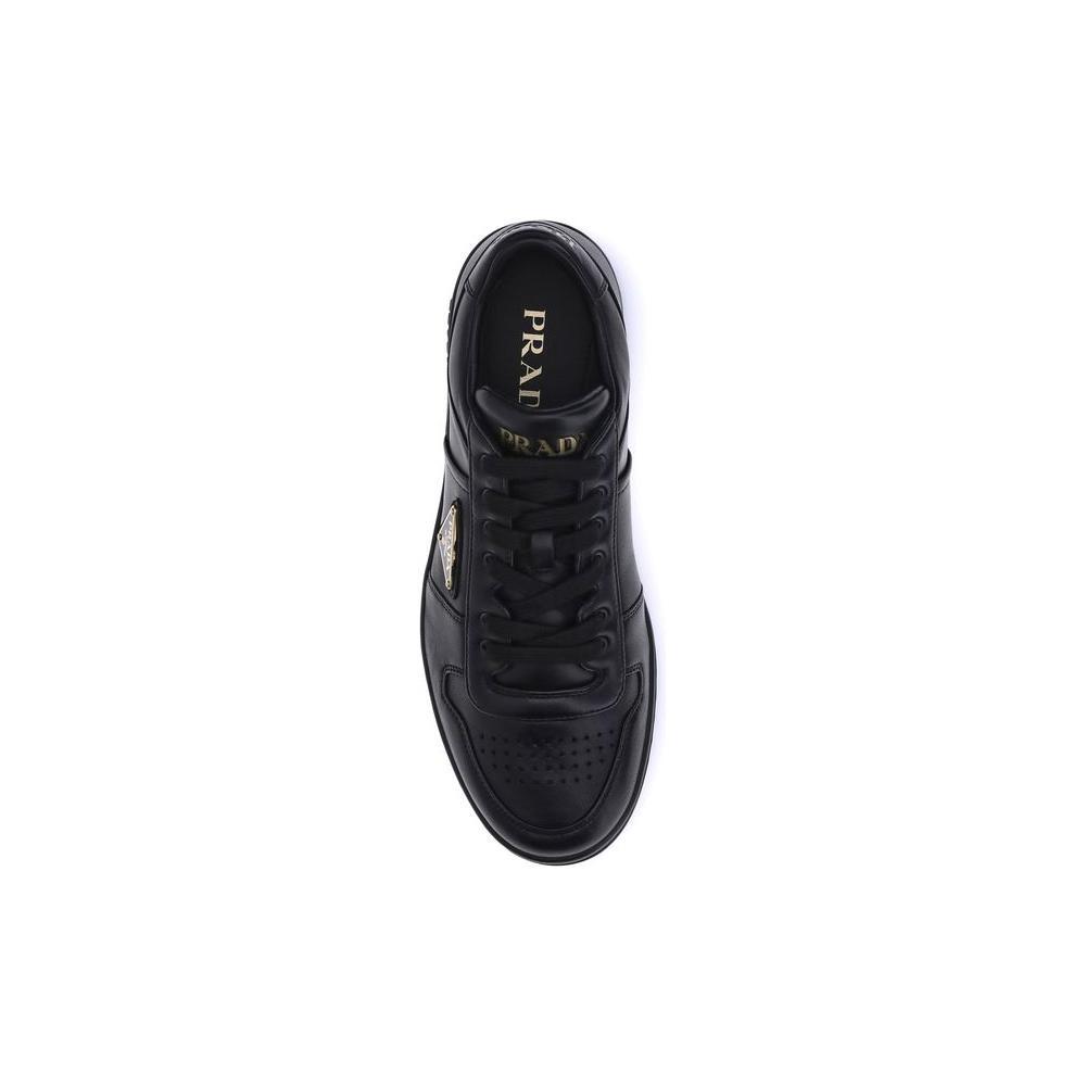 Prada’s Downtown leather Sneakers combine sporty lines and iconic details in a refined design. Featuring a paneled construction, they feature a lace-up front closure, perforated round toe and flat sole. The iconic triangular enameled Prada logo plaque decorates the outer side panel, while the heel and tongue are also branded. An essential yet distinctive model, perfect for an urban and elegant style.