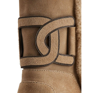 beige sheepskin/suede logo patch to the rear slip-on style round toe flat rubber sole Suede leather boots Size and Fit - Heel 1,8 in / 4,5 cm; Platform 1,6 in / 4 cm