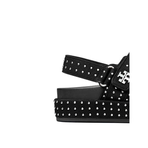 Black, nappa leather, studded detail, hook and loop front closure, signature Double T motif, double strap design, open round toe, leather insole with logo and platform. Kira studded sandals Size and Fit - Heel 1,2 in / 3 cm; Platform 0,8 in / 2 cm