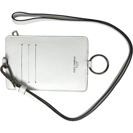 Dolce & Gabbana White Calf Leather Lanyard Logo Card Holder Men Wallet