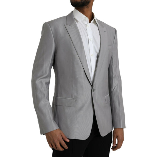 时尚灰色修身双排扣西装
