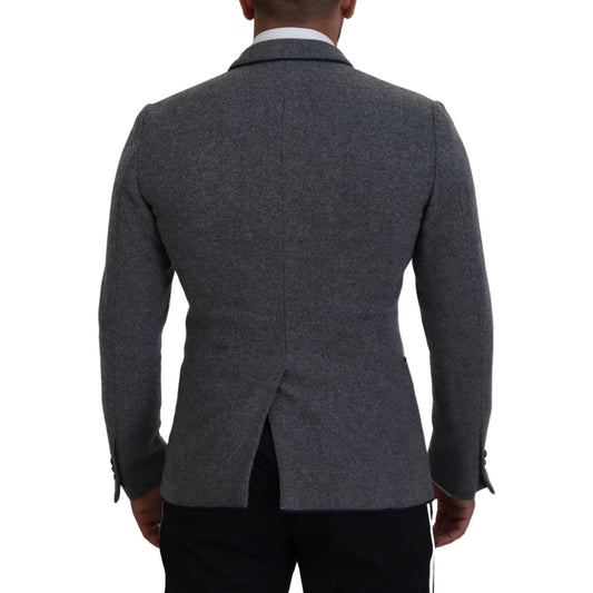 优雅的灰色羊毛西装外套,配以蜜蜂皇冠刺绣