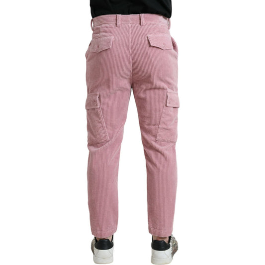 粉色灯芯绒棉质弹力紧身工装牛仔裤