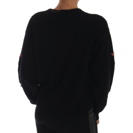 迷人亮片黑色锦缎毛衣