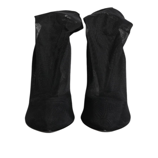 Dolce & Gabbana Black Silk Stretch Mesh Sock Boots Shoes