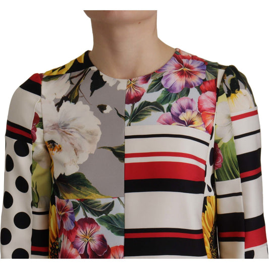多色拼布软缎直筒连衣裙