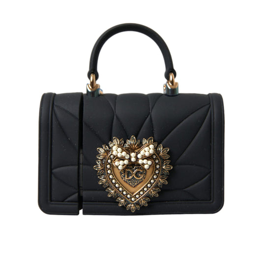 Dolce & Gabbana Black Silicone Devotion Heart Gold Chain Airpods Case