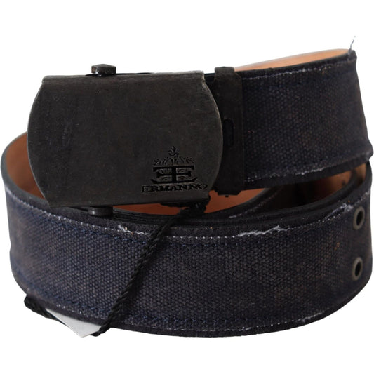 优雅的黑色帆布腰带配银色扣