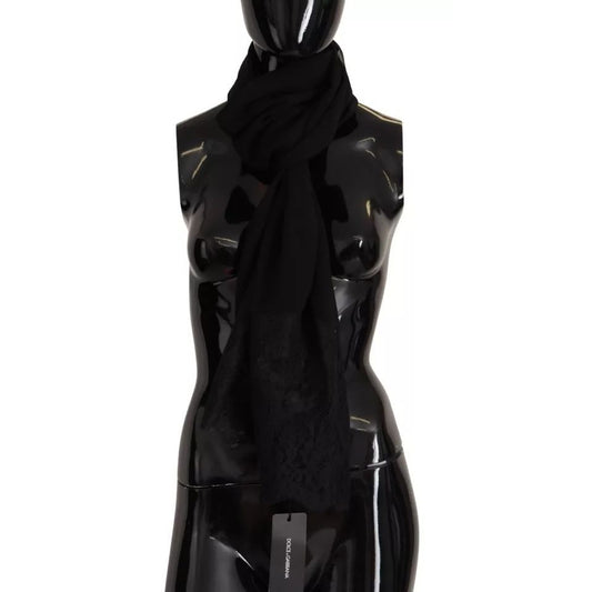 Dolce & Gabbana Black Solid Silk Wool Fringe Wrap Scarf