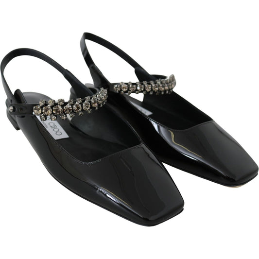 带水晶装饰的优雅黑色漆皮平底鞋