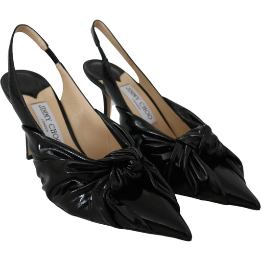 优雅黑色皮革尖头高跟鞋