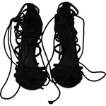 优雅黑色麂皮角斗士细高跟鞋