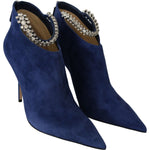 流行蓝色水晶带高跟靴