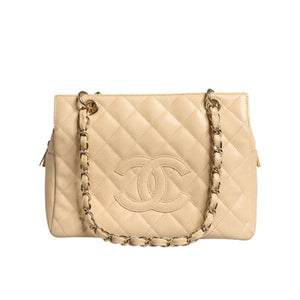 Chanel Beige Caviar De Coco Chain Leather Purse Bag