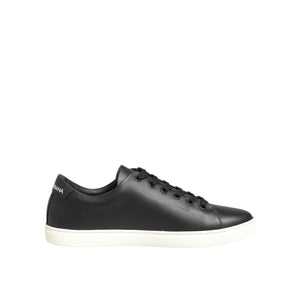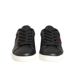 Dolce & Gabbana Black White Leather Crystal Heart Sneakers Shoes