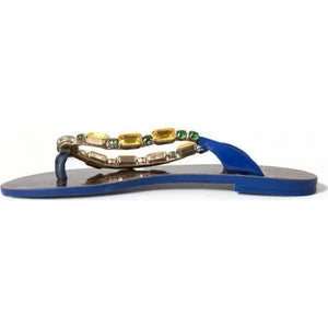 Dolce & Gabbana Blue Crystals Flats Sandals Beachwear Shoes